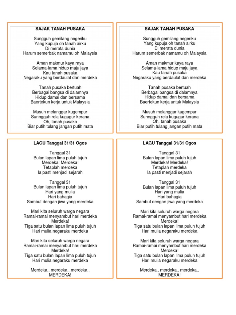 Lirik lagu 31 ogos sudirman. Lirik lagu sudirman tanggal 31 ogos tanggal tiga puluh satu bulan lapan lima puluh tujuh merdeka merdeka tetaplah merdeka ia pasti menjadi sejarah tanggal tiga puluh satu bulan lapan lima puluh tujuh hari yang mulia hari bahagia sambut dengan jiwa yang merdeka mari kita seluruh warga negara. Tanggal 31 bulan lapan lima puluh tujuh hari yang mulia hari bahagia sambut dengan jiwa yang merdeka.