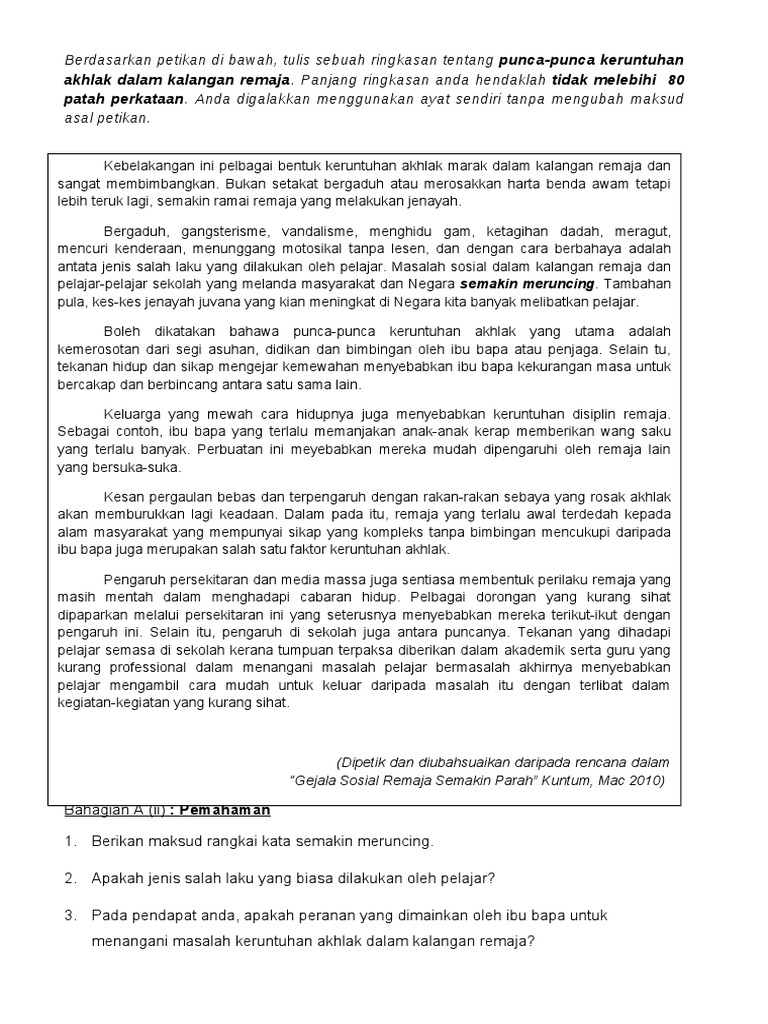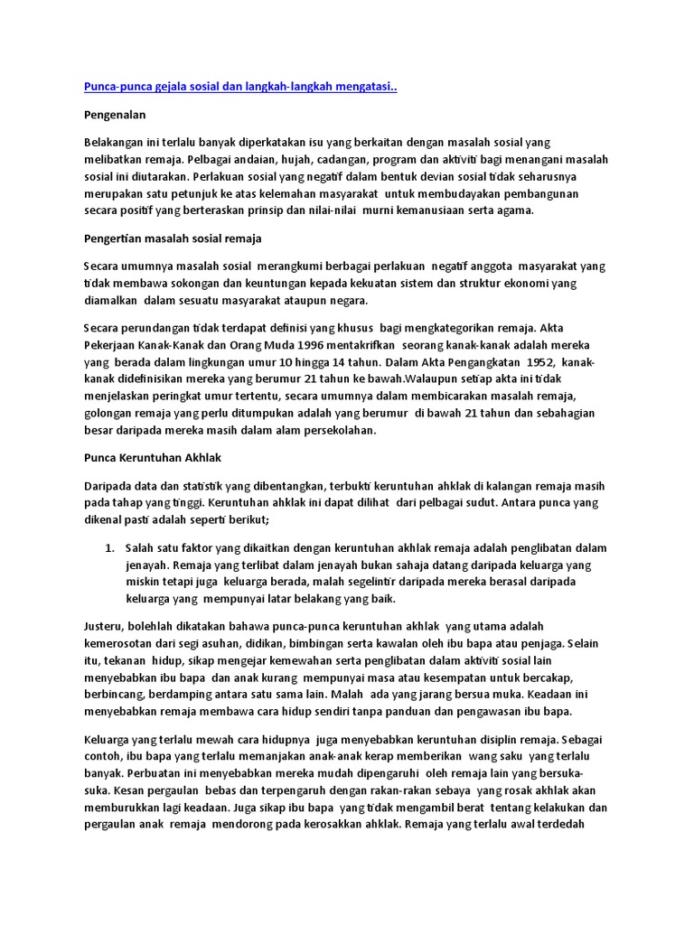 Langkah langkah mengatasi masalah keruntuhan moral remaja. Sedangkan dalam masa yang sama golongan remaja di malaysia di anggap sebagai pelapis menghadapai masalah keruntuhan moral dan terlibat dengan gejala sosial yang semakin hari serius. Selain itu beberapa agensi kerajaan dan badan sukarela telah dibentuk bagi menangani masalah sosial di samping mengubati penyakit keruntuhan akhlak remaja. Published on may 17 2016 may 17 2016 by ekspresi22.