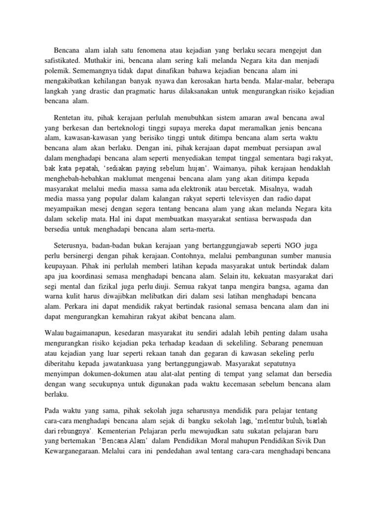 Namun berita lainy yang cukup mencuri perhatian adalah bencana banjir yang terjadi di berbagai wilayah disertai dengan angin kencang dan tanah longsor. Pengenalan dewasa ini manusia dilihat kurang peka dengan masalah alam hingga mengakibatkan bencana alam. Boleh dapatkan maklumat untuk buat karangan.