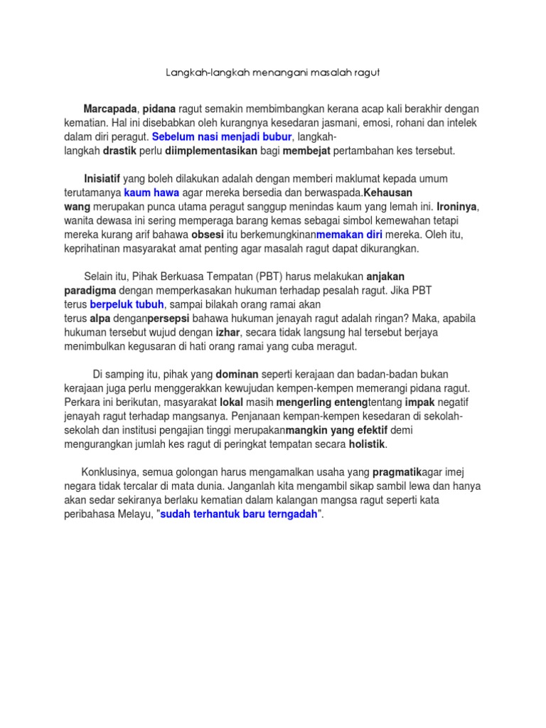 Cara mengatasi jenayah ragut di negara ini assalamualaikum dan salam sejahtera. Kes ragut ini akan menimbulkan banyak masalah dan mengancam nyawa masyarakat. Ketika itu kes ragut masih dianggap sebagai terpencil dan tidak memudaratkan mangsa.