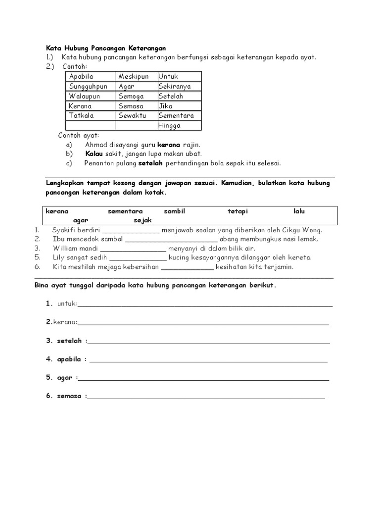 Latihan kata hubung pancangan relatif tahun 5. Latihan kata hubung pancangan keterangan eljqevmjwx41. Baik bukan saja bahkan juga jangankan pun. Saya terkejut apabila mendengar berita itu.