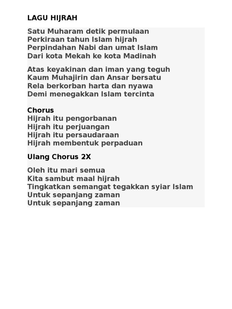 Lirik lagu maal hijrah. Umum 14 award 10. Satu muharam detik permulaan perkiraan tahun islam hijrah perpindahan nabi dan umat islam dari kota mekah ke kota madinah. Wednesday december 16 2009.
