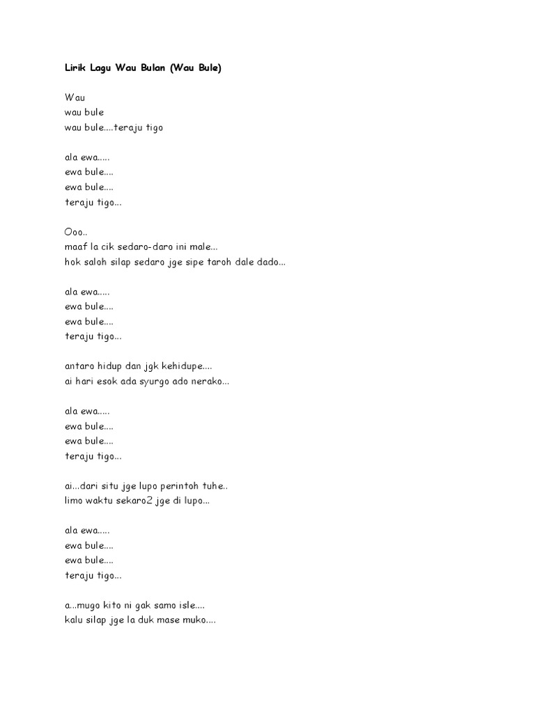 2036 hits lirik lagu wau bulan lagu dikir wau wau bule wau bule teraju tigo ala ewa ewa bule ewa bule teraju tigo ooo maaf la cik sedaro daro ini male hok saloh silap sedaro jge sipe taroh dale dado ala ewa ewa bule ewa bule teraju tigo antaro hidup. Lirik lagu wau bulan. Tq ye sepupu aku syg kau.