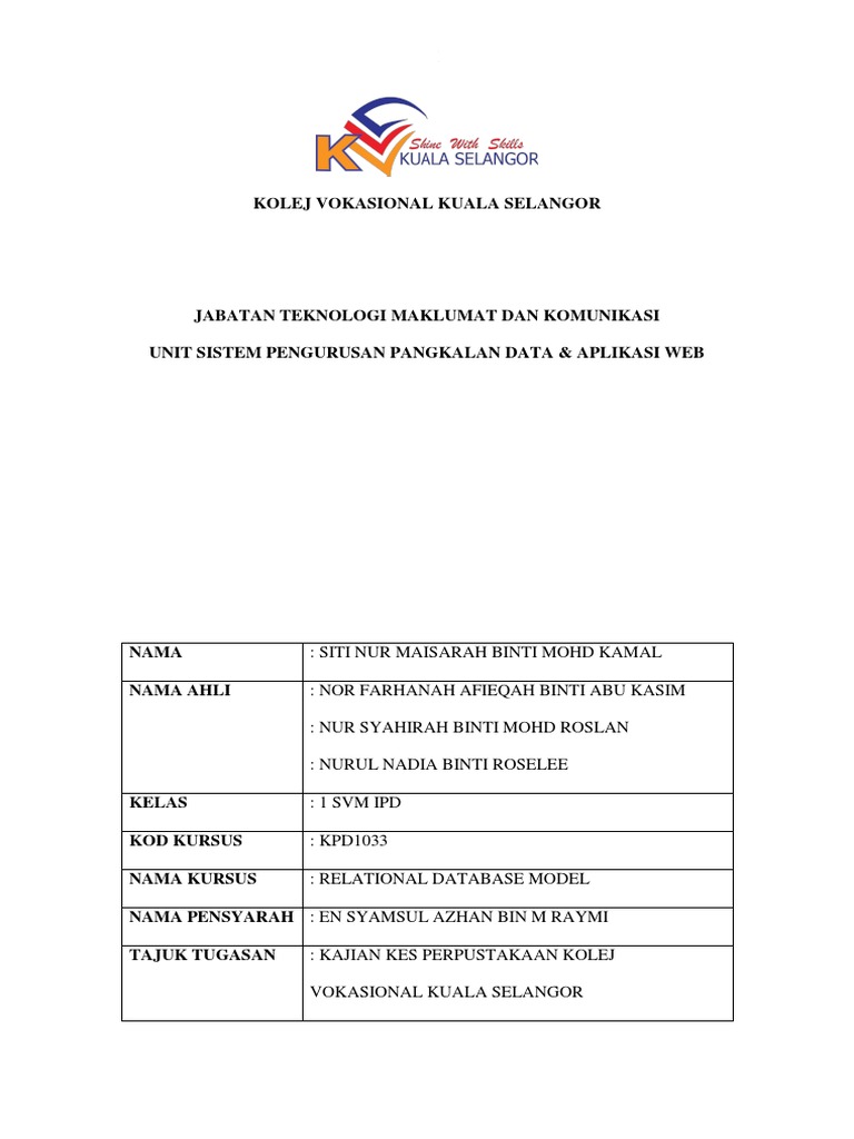 Logo kolej vokasional kuala selangor. 03 32718370 fax. Hakcipta terpelihara kolej vokasional kuala selangor 2014 hubungi kami penafian hakcipta dasar privasi dasar keselamatan. Kolej vokasional kuala selangor ini adalah blog kursus pengkalan data dan aplikasi web.