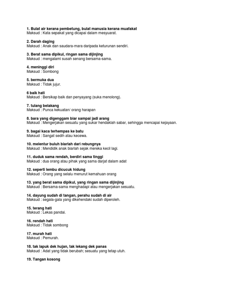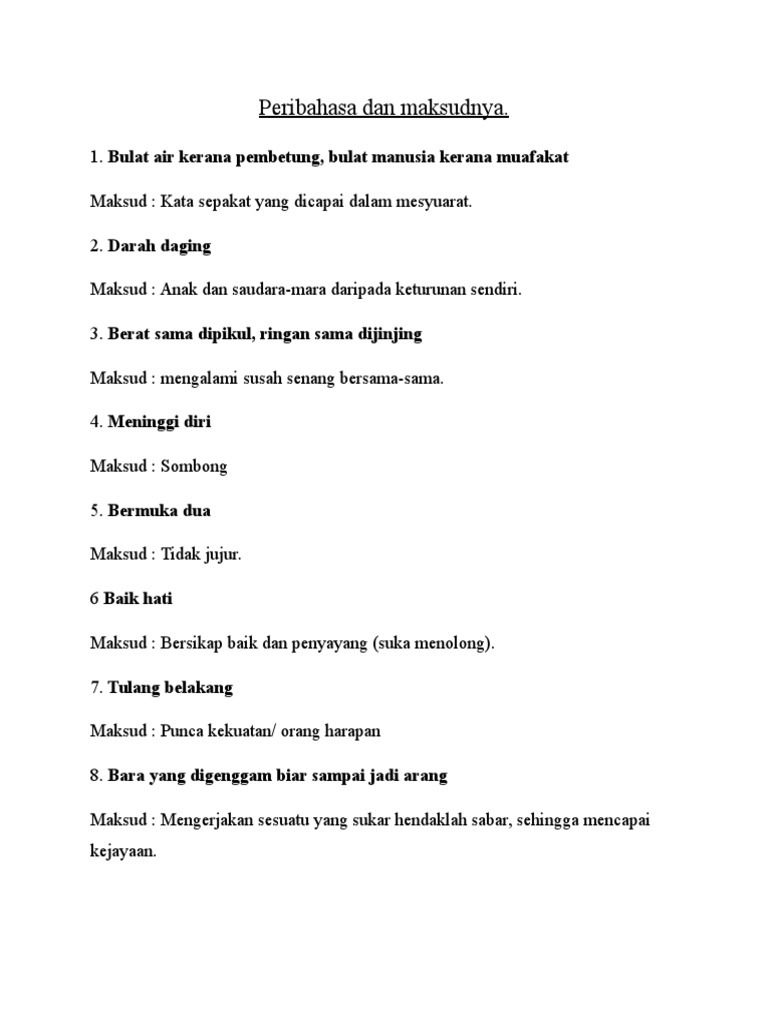 Kata sepakat yang dicapai dalam mesyuarat. Yang kita kejar tak dapat yang kita kendong pula berciciran maksud. Peribahasa bulat air kerana pembetung bulat manusia kerana muafakat bermaksud manusia bersatu sebulat suara kerana bermuafakat.