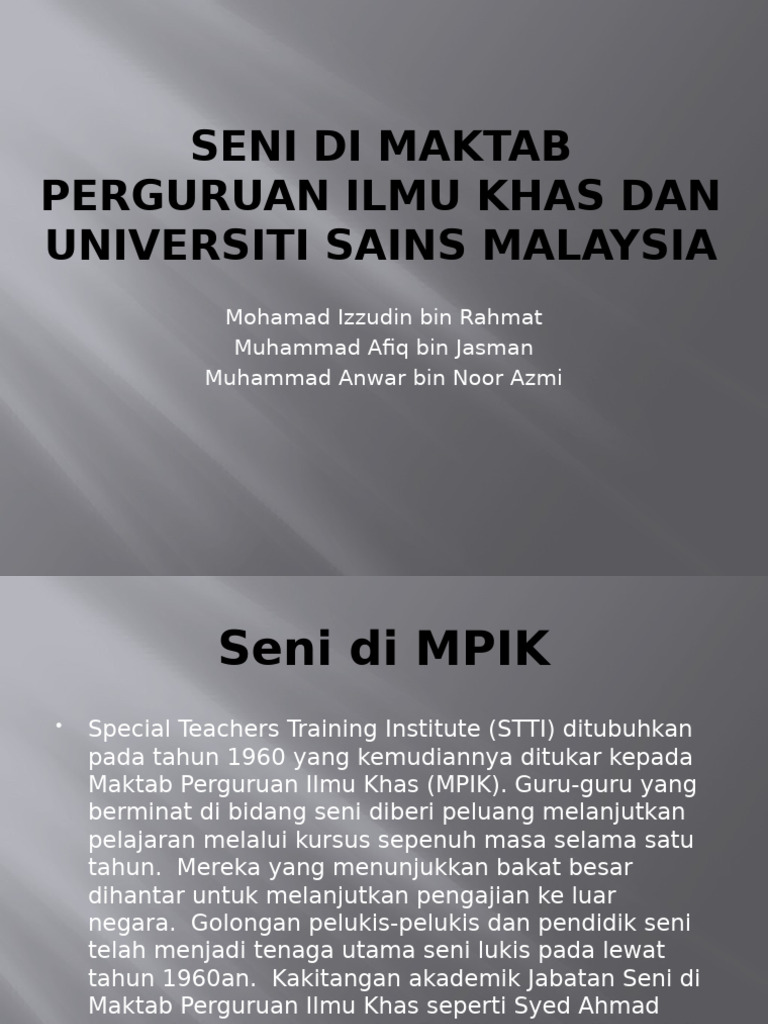 Maktab perguruan ilmu khas. Sebagaimana maktab maktab perguruan yang melatih bakal guru dari seluruh malaysia institut yang juga. Institut perguruan ilmu khas 12 13 am rosli sebagaimana maktab maktab perguruan yang melatih bakal guru dari seluruh malaysia maktab yang juga dikenali sebagai mpik kini ipik ini turut menyediakan kursus biasa seperti pengajian bahasa melayu pengajian muzik pendidikan jasmani dan kesihatan dan sebagainya. Maktab perguruan ilmu khas school is located at jalan tenteram cheras 56000 kuala lumpur wilayah persekutuan kuala lumpur malaysia.