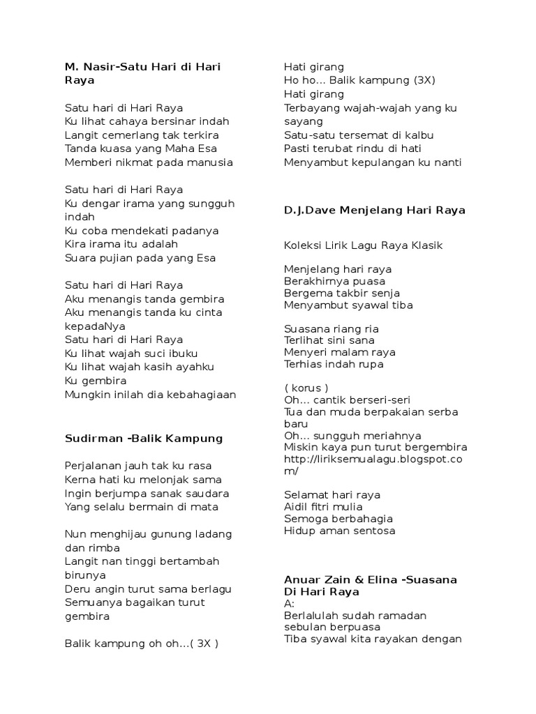 Menjelang hari raya lirik. Suasana riang ria terlihat sini sana menyeri malam raya terhias indah rupa korus oh cantik berseri seri tua dan muda berpakaian serba baru oh sungguh meriahnya miskin kaya pun turut bergembira. Koleksi lagu hari raya yang mungkin anda minati. Dave a to z lyrics menjelang hari raya berakhirnya puasa bergema takbir senja menyambut syawal tiba.