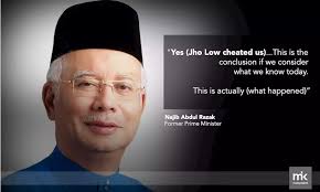Katanya jho low juga rakan karib anak tiri najib. Saya tak kenal jho low jawap najib bila ditanya oleh wartawan. Jho low dalam rumah najib.
