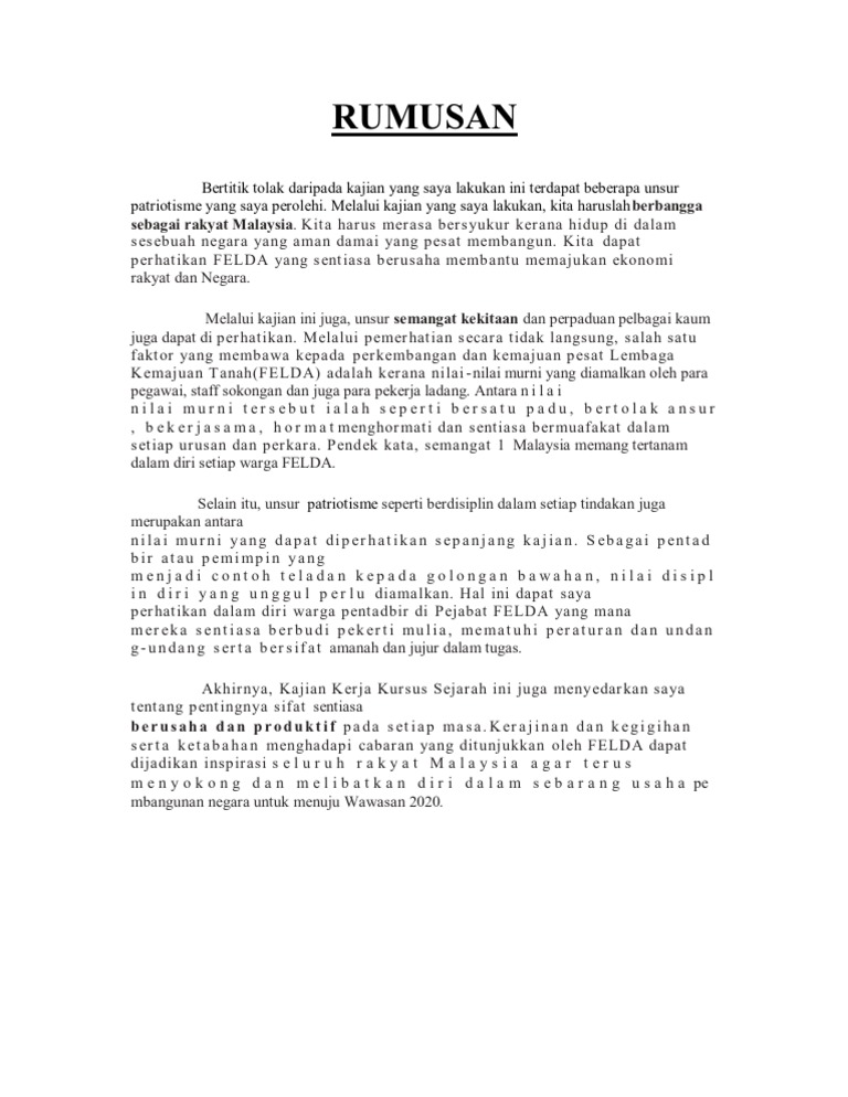 Nilai nilai murni yang perlu diamalkan oleh rakyat malaysia. Peranan ini penting bagi membawa pendidikan negara malaysia ke arah pendidikan yang bertaraf. Oleh itu ibu bapa hendaklah memberikan kasih sayang secukupnya kepada anak anak. Malaysia yang telah mencapai kemerdekaan lebih dari 50 tahun telah menyimpan banyak peristiwa sejarah yang perlu dihayati dan dipelajari oleh generasi masa kini.
