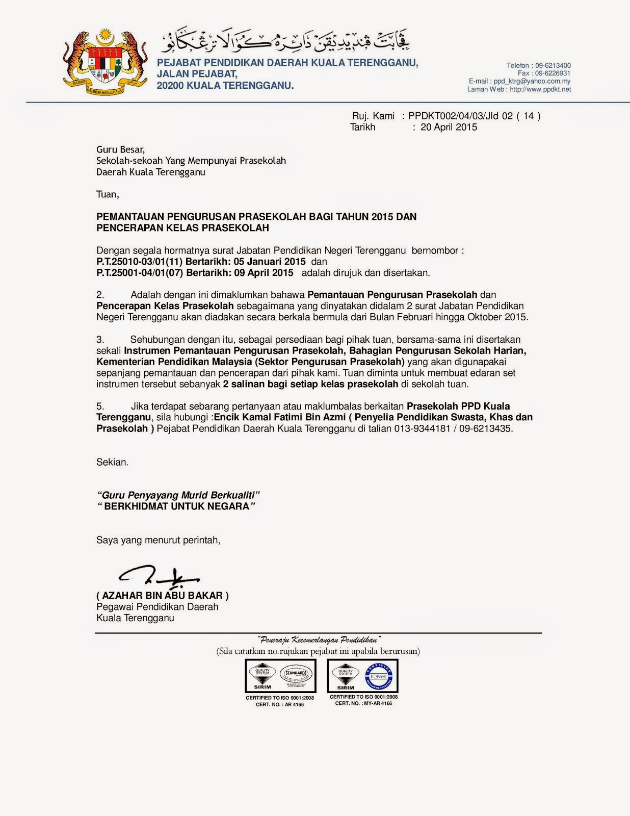 Pejabat pendidikan daerah kuala terengganu. Majlis bandaraya kuala terengganu tingkat 4 8 menara permint jalan sultan ismail 20200 kuala terengganu. Cl 45 642 20 9 16 16. Terdapat 16 jabatan pendidikan negeri yang diwujudkan mengikut negeri negeri di seluruh malaysia termasuk wilayah persekutuan kuala lumpur putrajaya dan labuan.