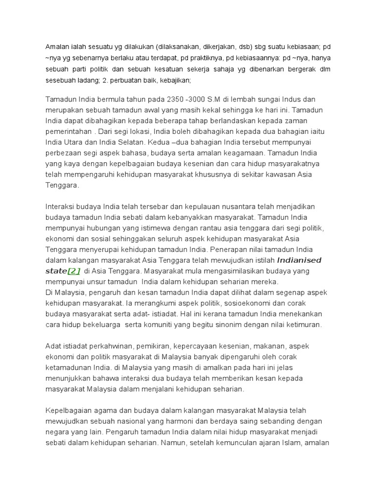 Abdul salam bin yussof untuk maklumat lanjut sila. Proses pengembangan pengaruh india bukanlah berkembang disebelah pihak sahaja iaitu dijalankan oleh orang india sahaja tapi juga dijalankan oleh orang asia tenggara. Tamadun india pengenalan masyarakat dan budaya agama dan kepercayaan sumbangan 3.