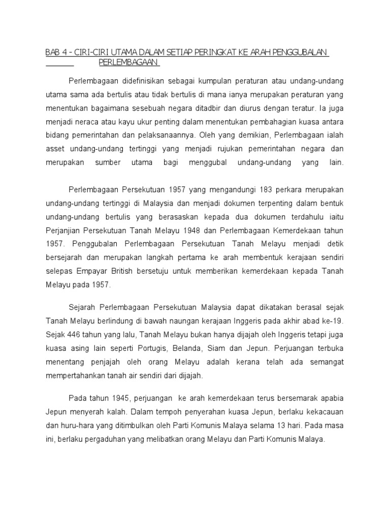 Penciptaan perjanjian persekutuan tanah melayu bermula pada julai 1946 dengan penubuhan jawatankuasa kerja untuk mencadangkan rangka perlembagaan baru bagi menggantikan malayan union. Perlembagaan malaysia tulisan jawi. Mengandungi 9 buah negeri melayu dan 2 buah negeri negeri selat iaitu pulau pinang dan melaka.