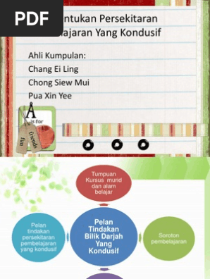 Suasana fizikal bilik darjah yang kondusif adalah penting untuk meningkatkan keberkesanan p p bilik darjah. Persekitaran pembelajaran yang kondusif garis panduan penggunaan ruang bilik darjah c pemandangan murid mestilah jelas dan tidak terhalang g kenal pasti ruang di dalam bilik darjah untuk aktiviti aktiviti tertentu h beri perhatian kepada pencahayaan pengudaraan dan perabot i. Persekitaran merujuk kepada keadaan di sekeliling sesuatu atau keadaan yang menjadi seperti latar belakang seseorang atau sesuatu.