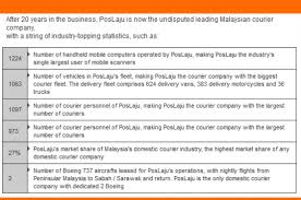Sama ada anda menghantar 100 bungkusan sehari atau hanya satu bungkusan sehari anda dapat menikmati harga penghantaran pos laju yang lebih murah. Pos laju s suite of products and services are available at more than 1 000 outlets comprising of 704 pos malaysia outlets 264 pos mini outlets 68 pos laju branches 151 authorised agents 24 pos on wheels 6 pos laju kiosks 13 pos laju service centres and 4 pos laju go2u mobile units. 8 00 am 4 30 pm first saturday sunday.
