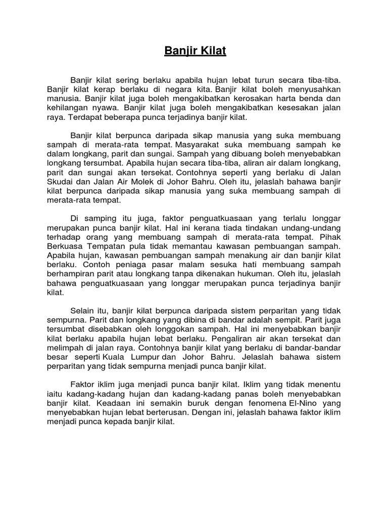 Anda digalakkan supaya menggunakan ayat anda sendiri tanpa mengubah maksud asal petikan. Punca kesan berlakunya banjir kilat banjir. Panjangnya ringkasan anda hendaklah tidak melebihi 80 patah perkataan.