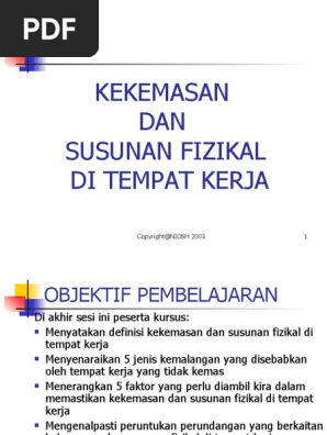 Tempat kerja yang kurang selamat boleh mengakibatkan kemalangan dan penyakit yang berkaitan dengan pekerjaan yang.