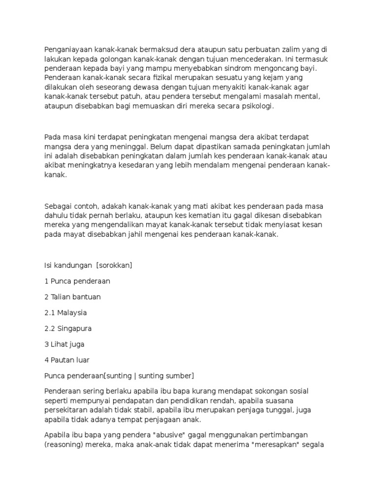 Kegagalan mengawal nafsu seks adalah punca utama berlakunya penderaan seksual terhadap kanak kanak yang dilakukan individu pelaku devian ini. Punca punca berlakunya penderaan kanak kanak 8 04 pg esei marcapada ini sering meniti dari bibir ke bibir seantero rakyat malaysia mengenai kes penderaan kanak kanak yang semakin mencatatkan angka yang membimbangkan. Kes penderaan kanak kanak turut ditunjangi oleh faktor tekanan ekonomi yang dihadapi oleh para orang tua.