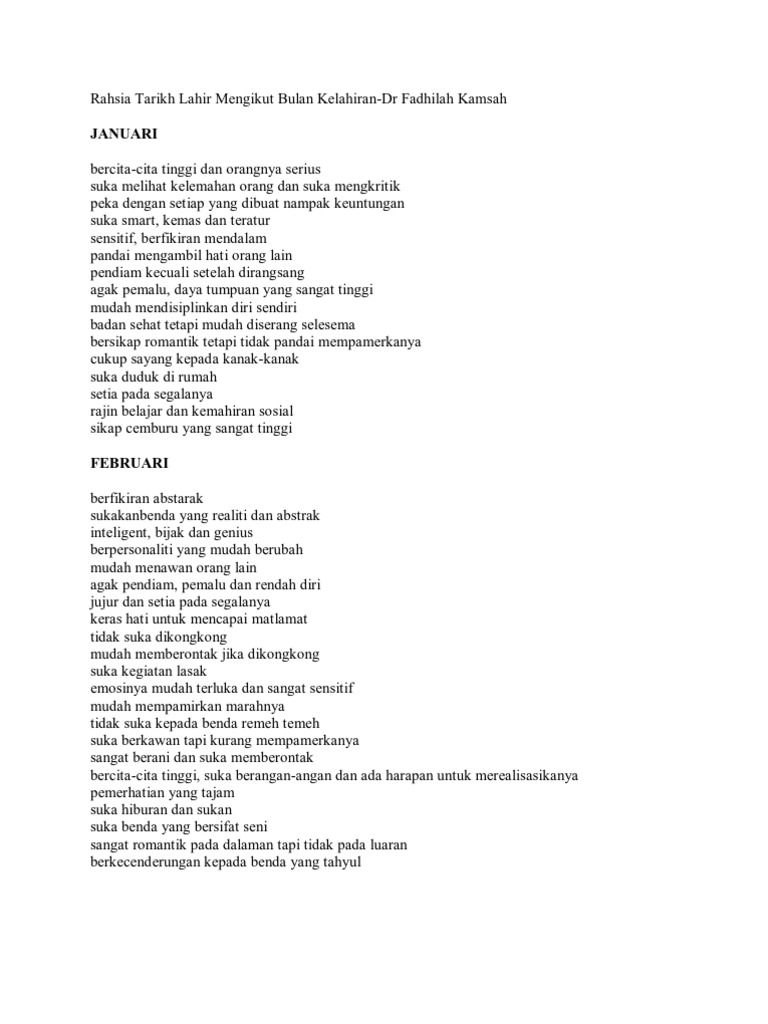 Rahsia tarikh lahir menurut islam. 09 05 2020 15 05 2018 by mrhanafi. Degil namun kuat semangat dan bermotivasi tinggi. Memiliki pemikaran yang tajam namun cepat marah.