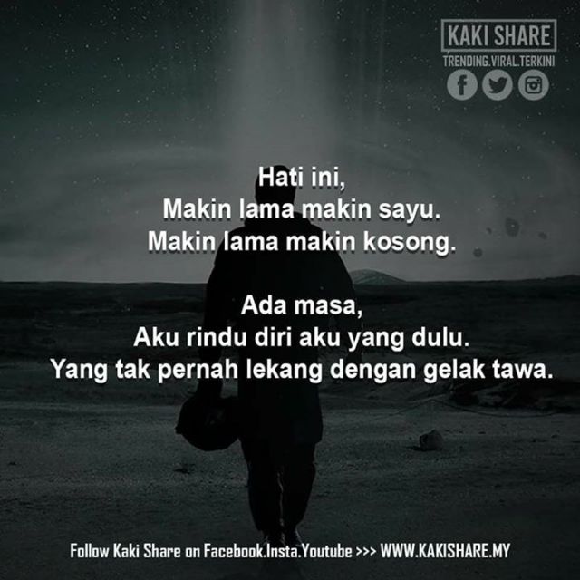 Hati ini makin sayu. Terkenangkan desa permai wajah ayah bonda bermain di mata. Namun sunyi di dalam hati ku biarkan terpendam.