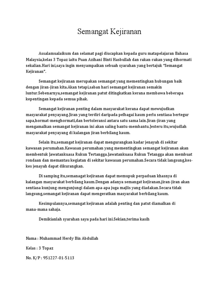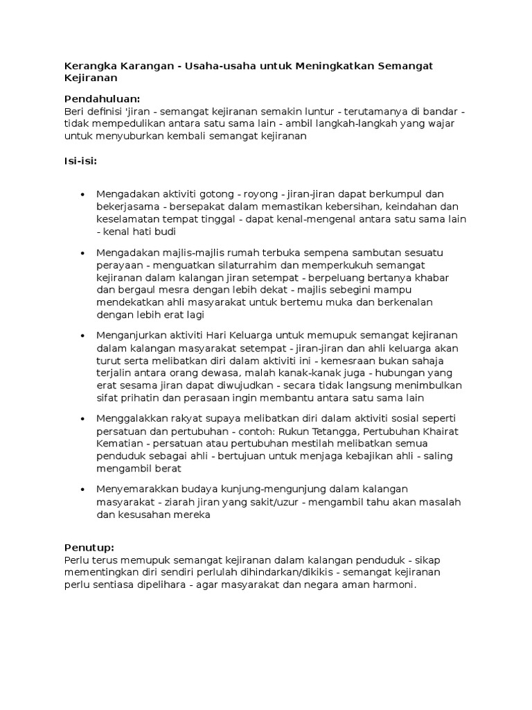 Semangat kejiranan semakin luntur dalam kalangan masyarakat. Semangat kejiranan yang semakin luntur telah menyebabkan timbulnya berbagai bagai masalah dalam masyarakat. Huraikan faktor faktor lunturnya semangat kejiranan dan cara cara mengatasinya. Contoh karangan spm bahasa melayu tajuk.