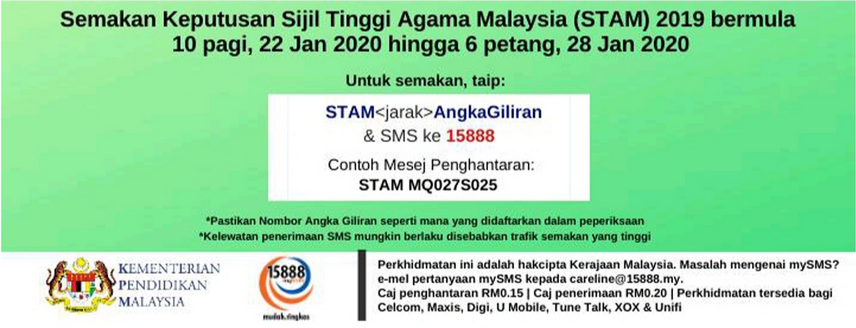 Semak keputusan permohonan a. Keputusan penuh peperiksaan sijil tinggi agama malaysia boleh diambil di sekolah masing masing. Semakan keputusan sijil tinggi agama malaysia stam secara online dan sms.