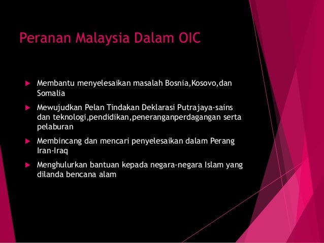 Sumbangan malaysia dalam oic. Itu rumusan perdana menteri datuk seri najib razak selepas mengharungi jadual padat sepanjang dua hari menghadiri sidang kemuncak kali ini yang turut dipenuhinya dengan enam perbincangan dua hala selain majlis makan malam rasmi. Peranan dasar luar juga memainkan peranan dalam perkembangan sosial ekonomi dan politik. Hubungan malaysia dengan negara negara islam jelas dalam oic malahan malaysia adalah salah saru negara pengasas pertubuhan oic.