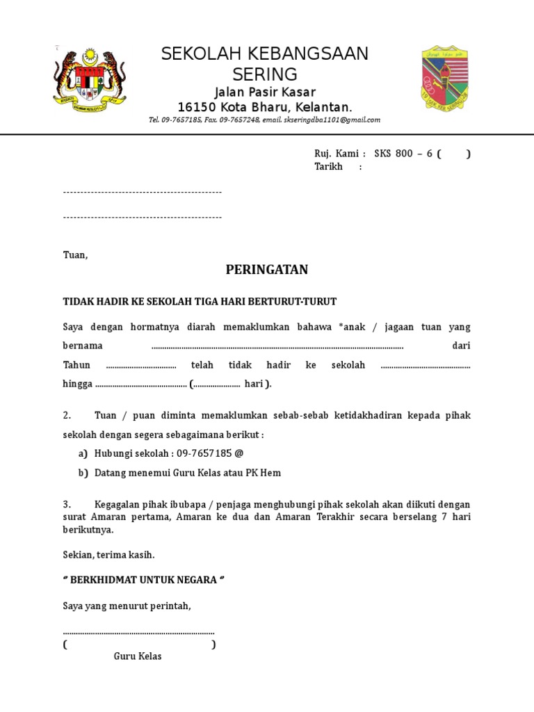 Surat amaran tidak hadir kerja. Contoh surat amaran tidak hadir sekolah have a graphic from the other contoh surat amaran tidak hadir sekolah in addition it will feature a picture of a sort that could be seen in the gallery of contoh surat amaran tidak hadir sekolah. Surat penjelasan tunjuk sebab ini sangat penting agar kita tidak dikenakan tindakan tata tertib. Pastikan alasan kukuh supaya boss boleh terima.