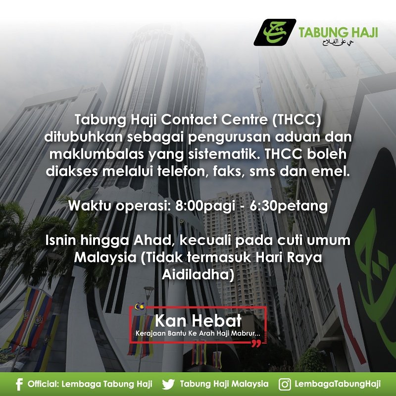 Tabung haji waktu operasi. Waktu urusniaga tabung haji utc di seluruh malaysia disebabkan pandemik covid 19 yang melanda seluruh dunia th telah memperbaharui tempoh dan waktu urusniaganya. Waktu operasi tabung haji malaysia kelantan. Hari waktu pejabat operasi kaunter ahad rabu 8 00 pagi 1 00 ptg 2 00 ptg 5.