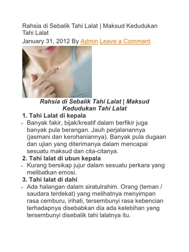 Pengalaman ini membuat michelle mengimbau agar periksakan tahi lalat secara pribadi. Lokasi lokasi tumbuhnya tahi lalat ternyata memiliki makna tersendiri. Arti letak tahi lalat di tubuh kali ini akan membahas tentang makna tahi lalat jika anda memiliki tahi lalat di bagian tubuh anda jangan mempunyai keinginan untuk menghilangkannya sebelum tahu 50 mitos arti tahi lalat di tubuh siapa tahu arti tahi lalat yang anda punya merupakan salah satu tahi lalat yang ada pada 50 mitos arti tahi lalat di tubuh.