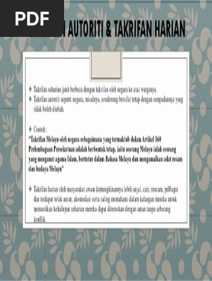 Takrifan harian dan takrifan autoriti. Kesimpulannya takrifan harian oleh masyarakat lebih pelbagai dan tedapat tolak ansur serta saling memahami bagi memastikan kehidupan mereka diteruskan dengan aman tanpa sebarang konflik. Mulai coba gratis batalkan kapan saja. Melayu menganut agama islam bertutur dalam bahasa melayu dan mengamalkan adat resam dan budaya melayu harian takrifan masyarakat awam berbeza dalam kehidupan seharian.
