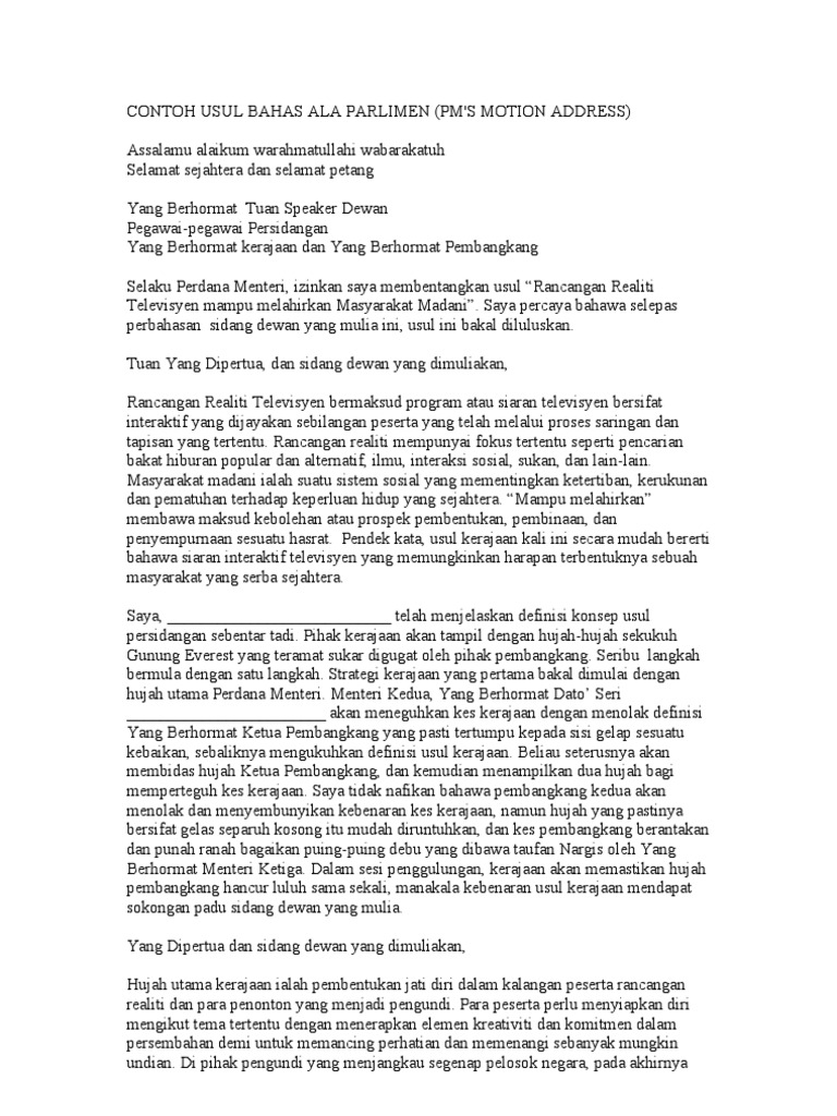 Contoh teks pendahuluan bahas ala parlimen. 1 1kertas konsep bahas ala parlimen ms1 24 2 thanesvari isha. Ada isu isu penting yang perlu dikupas dan usul mengikat binding kedua dua pihak untuk berbicara tentang isu isu tersebut sahaja.