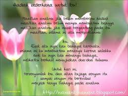 Meskipun jarak memisahkan kita tapi kasih sayang kami selalu dan akan selamanya untukmu. Barangkali membuat puisi tentang untuk ibu di hari kelahirannya adalah sebuah ucapan dan hadiah. Moga selamat sejahtera ibu di dunia akhirat dimurahkan rezki dipermudah urusan dikurniakan kesihatan yang baik diberkati dan terus menerus dalam ibadah kepadanya read.
