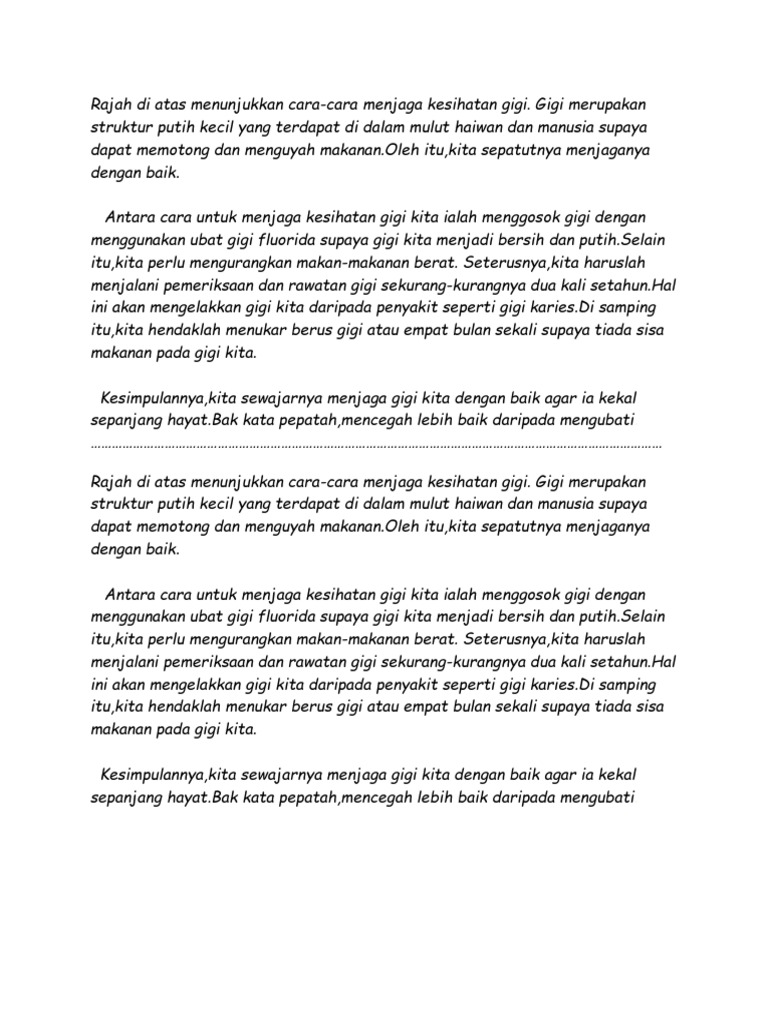 Oleh itu kita bertanggungjawab memelihara kebaikan yang telah dikurniakan kepada kita. Tulis ulasan tentang cara cara menjaga kesihatan diri dalam bentuk perenggan. Cara yang lagi mudah ialah seseorang itu perlu menjaga kebersihan diri.