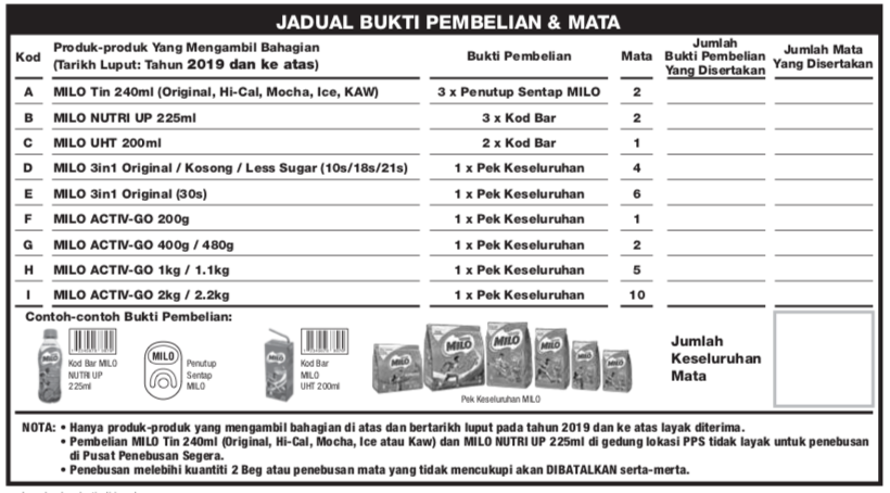 Lokasi pusat penebusan segera pps minggu ini. دقيقة واحدة العامة 10am 10pm terhad kepada 600 jaket a dan b sehari. Setiap produk milo turut serta yang dibeli akan melayakkan anda.